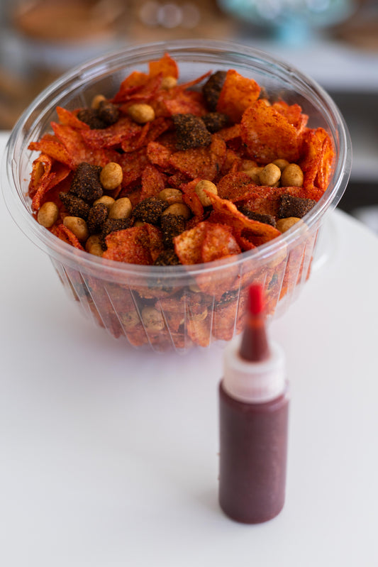 Botella de Vino Blanco con Mini Caja de Charcutería