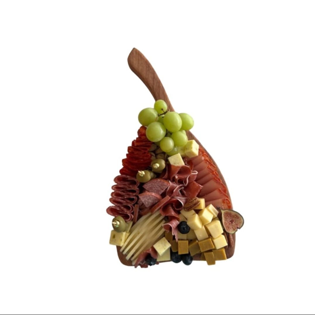 Incluye: Queso Pepper Jack, Gouda, Manchego Semicurado, Salami grueso y delgado, Lomo embuchado, jamón Serrano, Chorizo de Pamplona, pistaches, nueces, aceitunas y fruta de temporada.